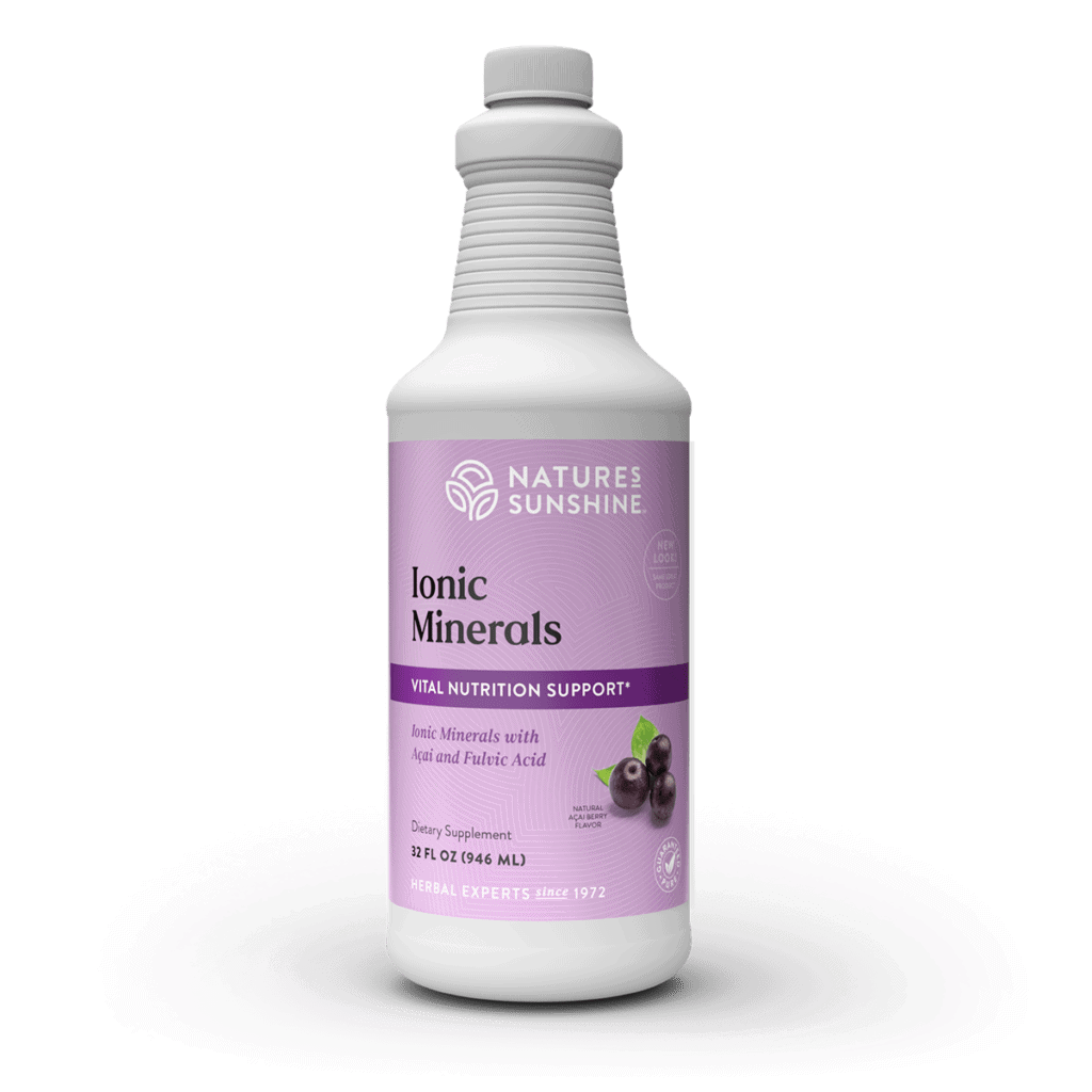 Nature's Sunshine Ionic Minerals with Acai contiene 70 oligoelementos que están listos para ser absorbidos por el cuerpo. Los minerales iónicos, o cargados, no necesitan ser descompuestos por el cuerpo antes de su absorción, lo que los hace fácilmente disponibles para su uso rápido por los diferentes sistemas del cuerpo. Nature's Sunshine Ionic Minerals with Acai apoya un equilibrio saludable del pH, suministra electrolitos, antioxidantes, aminoácidos, ácidos grasos esenciales, e incluso ayuda a reconstruir el sistema inmunológico. El Acai se utiliza para aromatizar este suplemento, proporcionando un refrescante sabor a bayas.