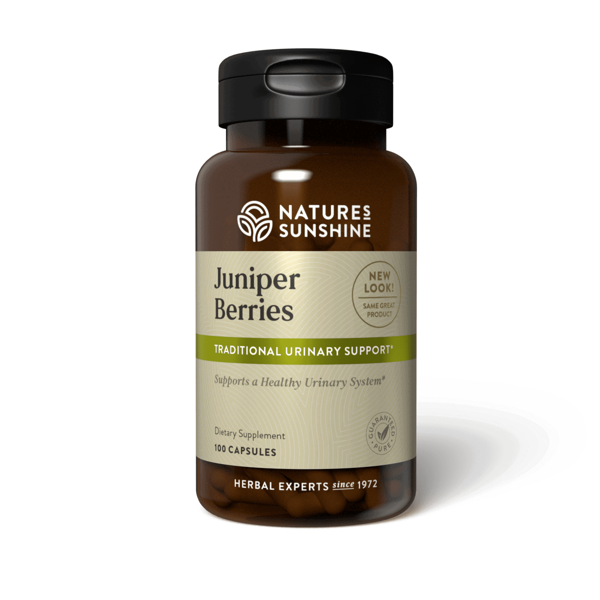 Cultivadas en todo el hemisferio norte, las bayas del arbusto del enebro contienen quercetina, proantocinidinas y aceite volátil. Las bayas de enebro, que tardan dos o tres años en madurar y pueden encontrarse en la misma planta junto a bayas más o menos maduras, sustentan la capacidad del organismo para mantener un correcto equilibrio de los fluidos. Debido a sus propiedades para mantener el equilibrio de los fluidos, las bayas de enebro son excepcionalmente beneficiosas para el sistema urinario. Las bayas de enebro de Nature's Sunshine vienen en cápsulas de 400 mg.