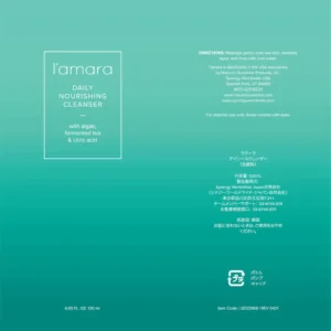 Nutra su brillo con el limpiador nutritivo diario de l'amara, un limpiador diario con una infusión nutritiva de té fermentado, algas y ácido cítrico, para una piel limpia y hermosa.