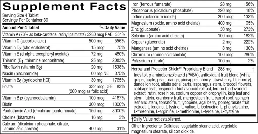 While most multivitamins stick to just vitamins and minerals, Super Supplemental also includes amino acids like L-lysine and L-leucine, a proprietary fruit blend featuring acai, pomegranate, and mangosteen, plus nutrient-rich greens like broccoli, spinach, and alfalfa. This well-rounded formula is designed to help fill the nutritional gaps that a standard multivitamin might miss.