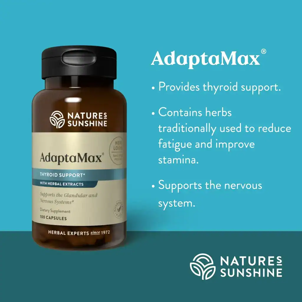 Nature’s Sunshine AdaptaMax® boosts energy levels and stimulates the immune system. A unique blend of Rhodiola rosea, Eleutherococcus senticosus, Korean ginseng, ashwaganda, rosemary, Gynostemma pentaphyllum and schizandra, this formula helps the body cope with fatigue and aging while protecting the cells from oxidative damage. AdaptaMax also promotes a positive mood and fortifies the immune system.