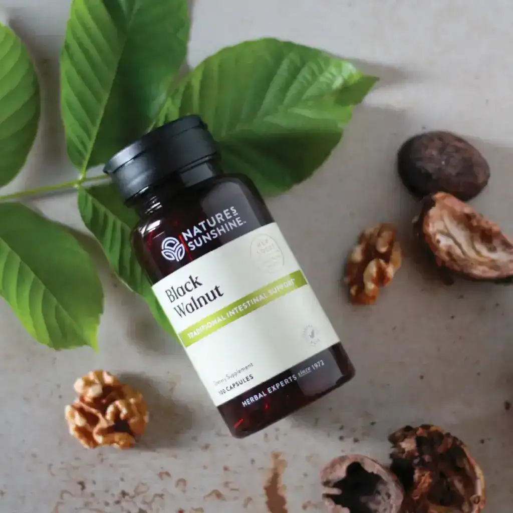 The ancient Greeks used the hulls of black walnut to support the intestinal system and the skin. Nature’s Sunshine Black Walnut ATC is rich in vitamin C and the trace minerals chromium and iodine, which are derived from the hulls of black walnuts. Black walnuts have also been shown to be rich in tannins which, like wines or grapes with high tannins, may have toning and soothing advantages for the skin. Through the ages, it has proven to be an effective yet gentle support to the intestinal system.