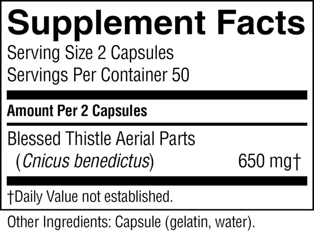 Historically used to support the female reproductive system, Blessed Thistle contains sesquiterpene lactones which benefit the digestive system and liver function. Additionally, it may also increase milk flow in breastfeeding women. Nature’s Sunshine Blessed Thistle comes in 325 mg capsules.