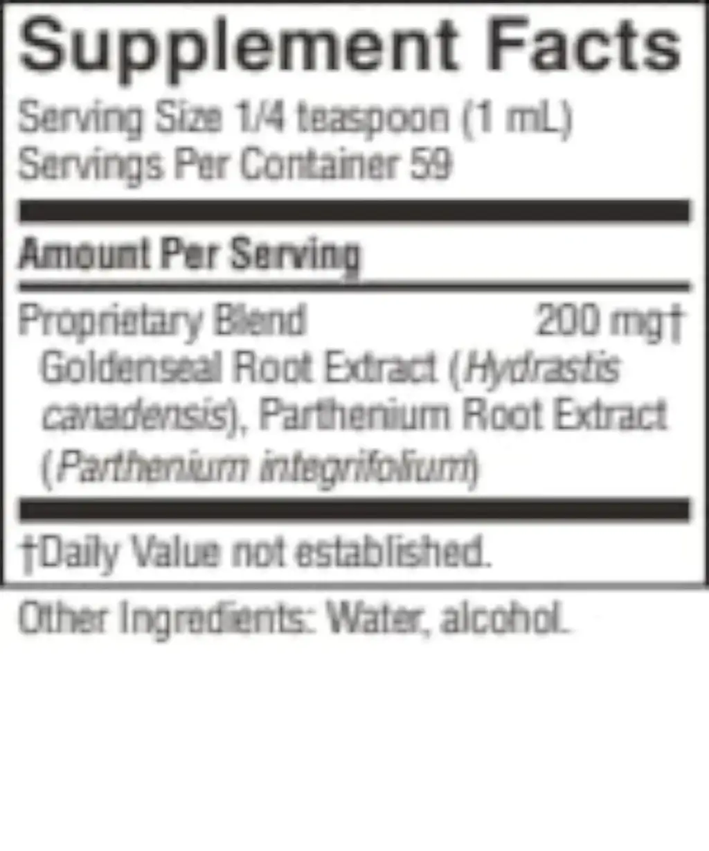| Proprietary Blend: Goldenseal root extract, parthenium root extract | 200 mg |