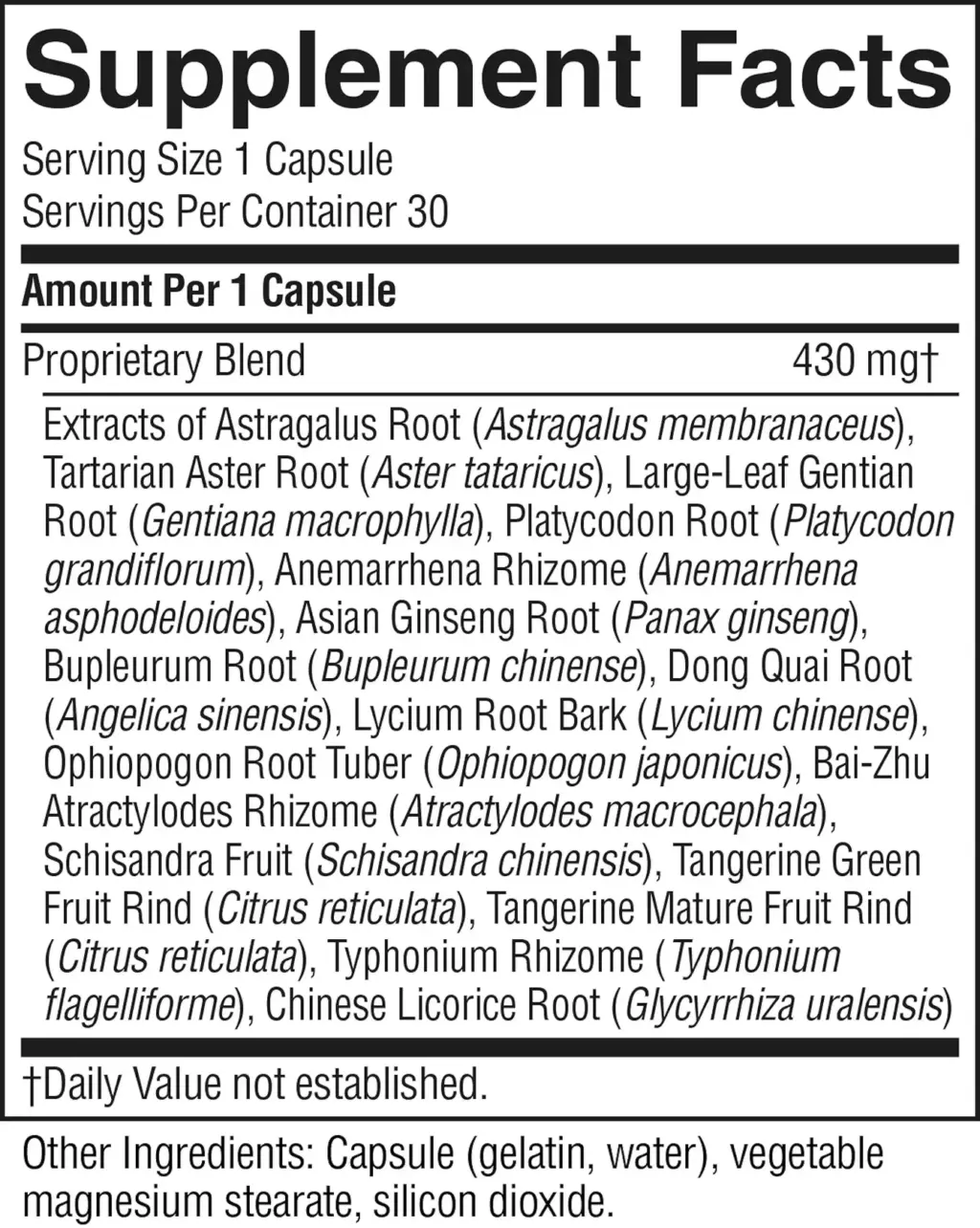 Nature’s Sunshine Lung Support TCM Concentrate blends 16 herbs used in traditional Chinese medicine to support the lungs. The same formula as Chinese Lung Support but in a highly concentrated form, this blend of herbs supports a weakened metal constitution. Known as fu lei or “strengthen the weak and thin” in Chinese, Lung Support TCM combines anemarrhena, aster, bupleurum, and astragalus among other herbs to provide immune support, boost energy, and nourish the respiratory system.