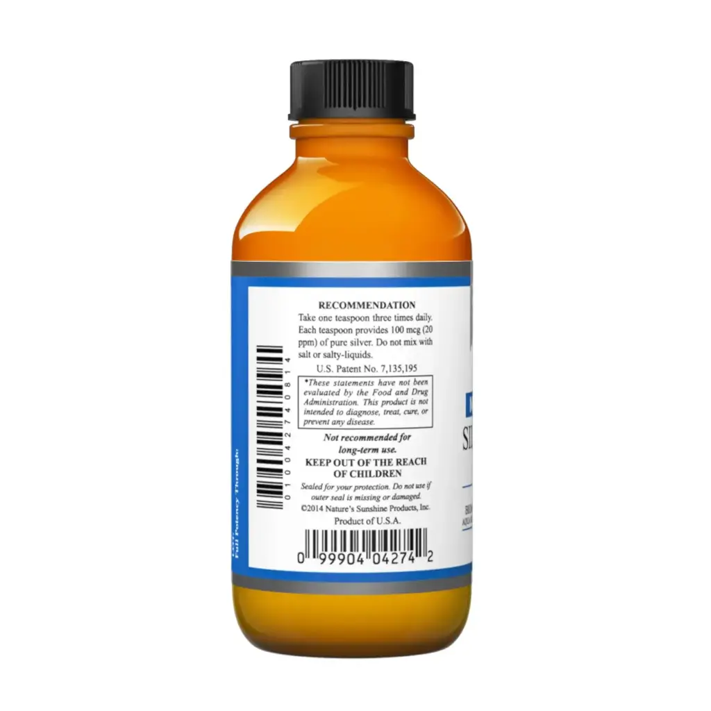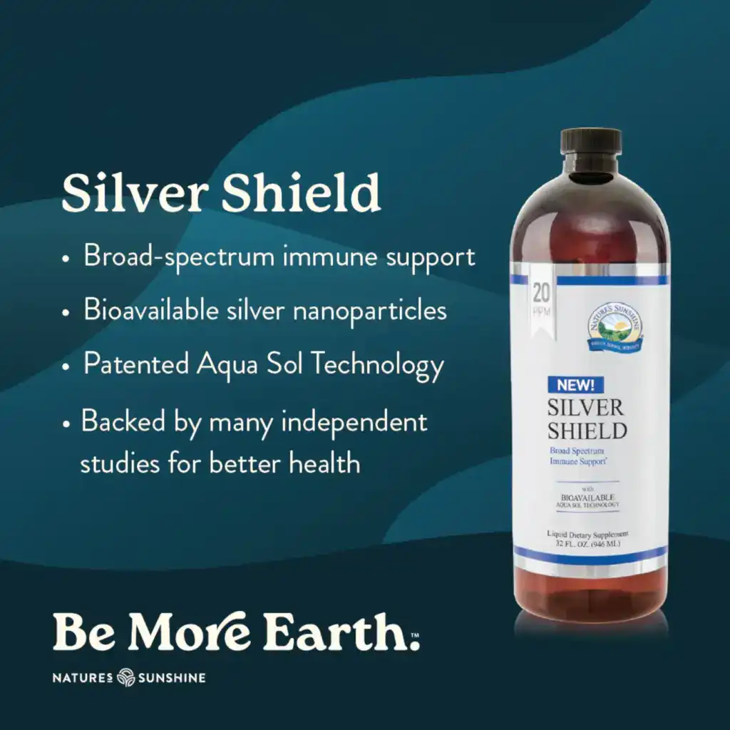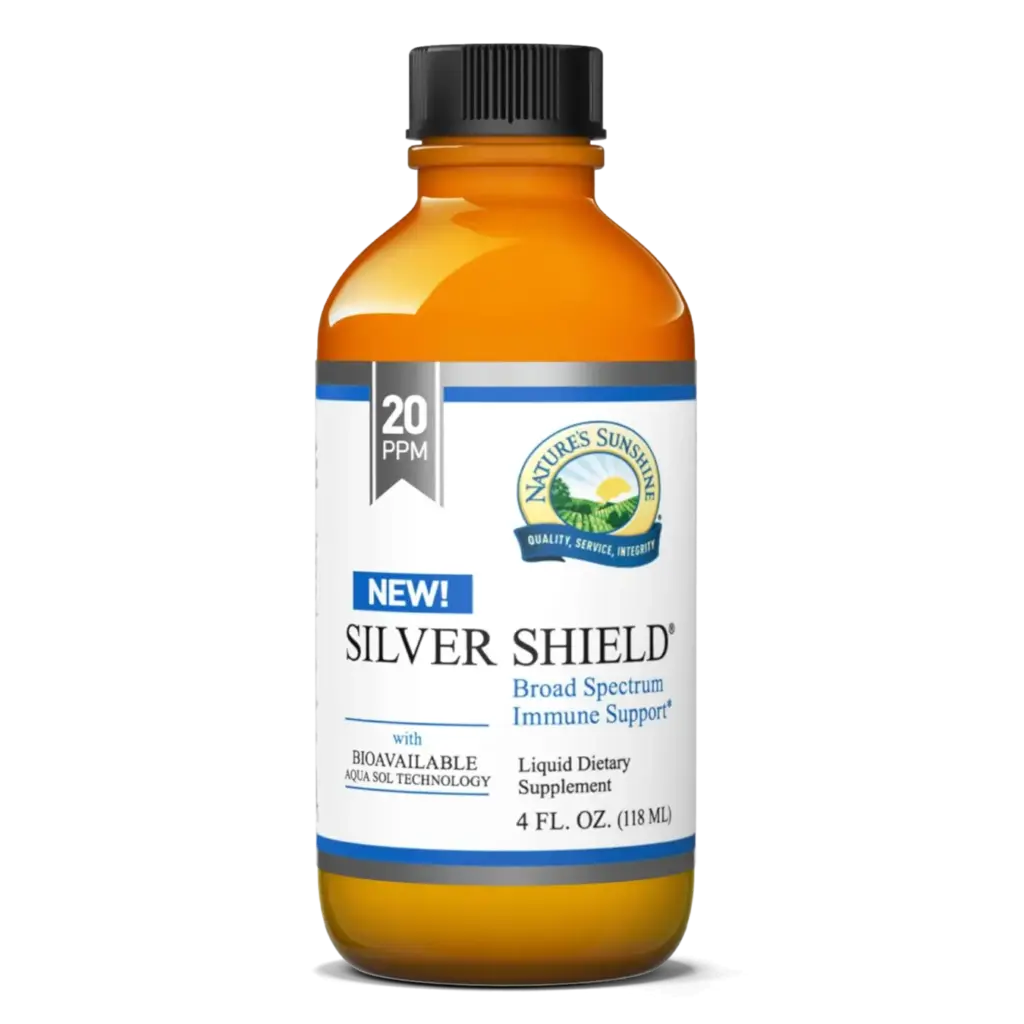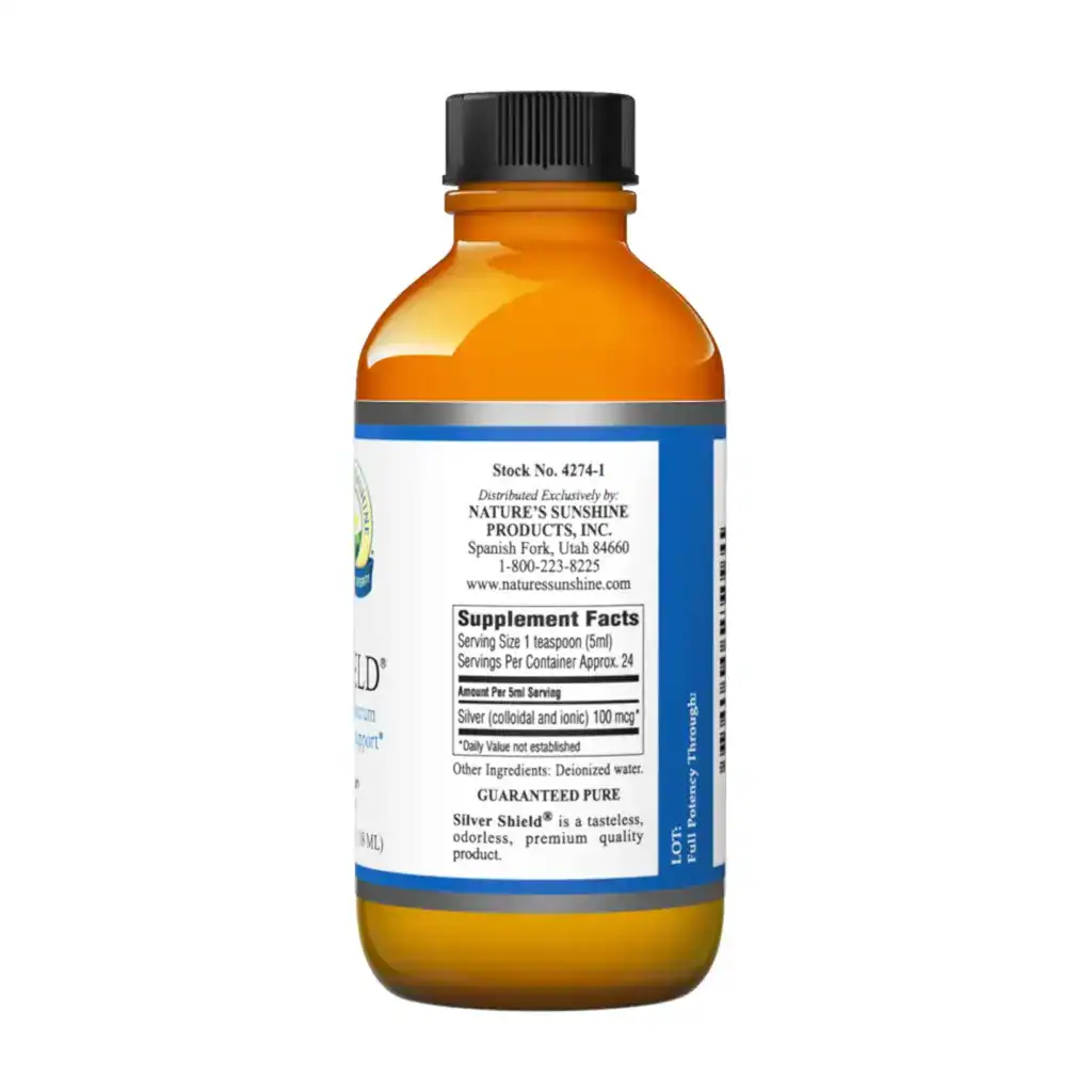 Nature’s Sunshine Silver Shield with Aqua Sol Technology provides the immune-supporting benefits of pure silver particles. The formula is non-toxic, and there is no risk of metal contamination when taking this product. Silver Shield suspends silver particles in pure water through patented processes that undergo strict quality control. The nano-sized silver particles journey through the kidneys and colon and may not affect beneficial bacteria populations in the colon. Each serving of Silver Shield with Aqua Sol Technology supplies the body with 100 mcg of pure silver.