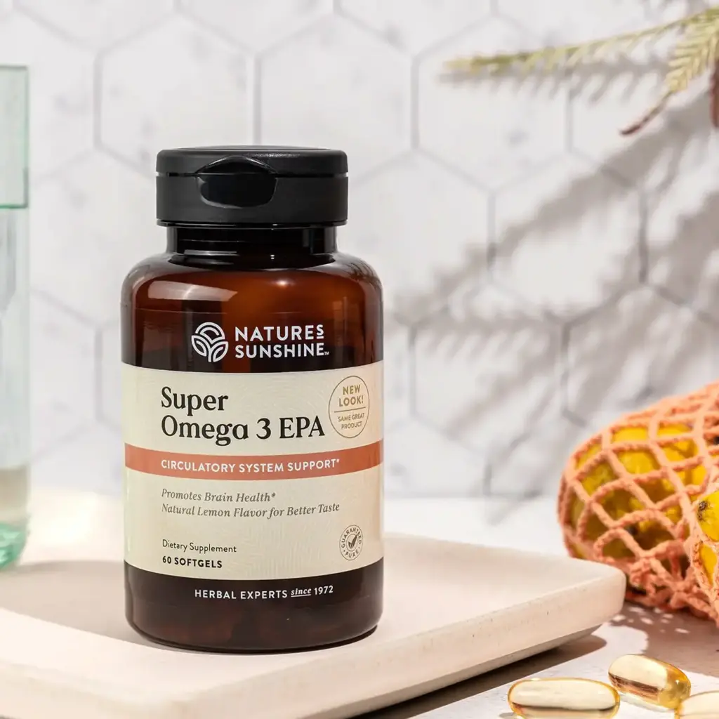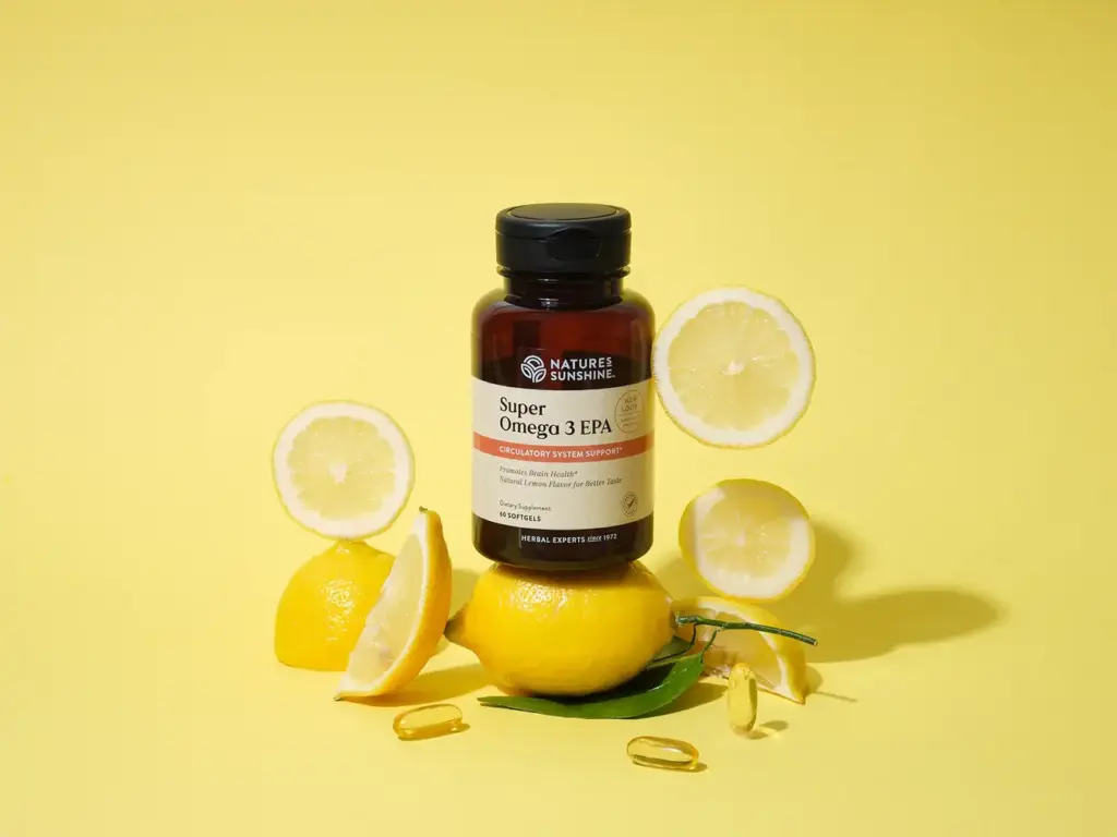 Nature’s Sunshine Super Omega-3 EPA supports cardiovascular health as well as the general health of the entire body. While most fats can prove harmful to the body, omega-3 fats, particularly the two in this formula–EPA and DHA, may reduce the risk of coronary heart disease. Omega-3 fatty acids play an essential role in cell membranes, nourish the structural system, and help keep the skin in good health. Super Omega-3 EPA consist of 380 mg EPA and 190 mg of DHA. The formula blends lemon oil with the omega-3s to reduce the fishy aftertaste and to decrease gas.