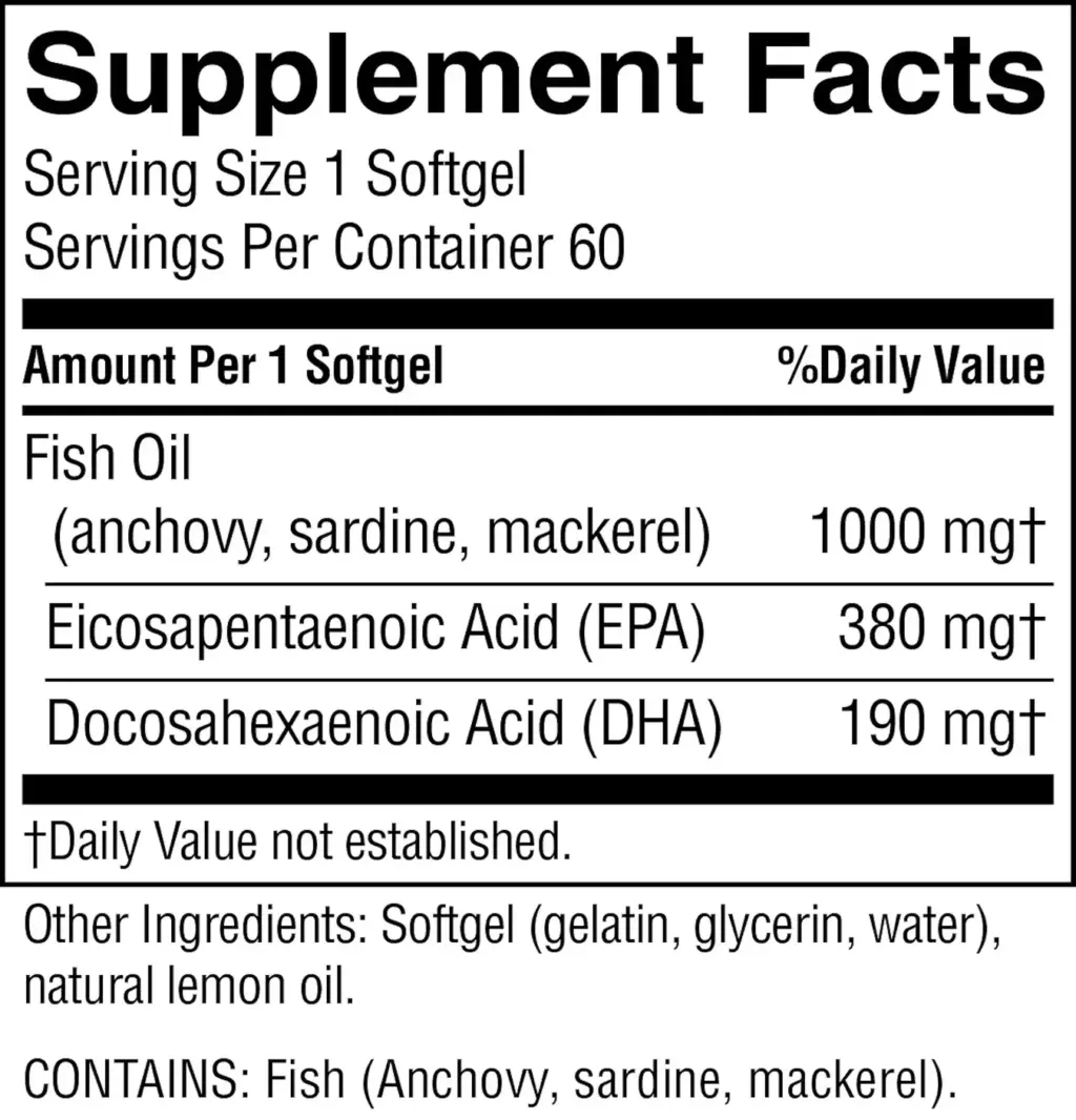 | Fish oil (anchovy, sardine, and mackerel) | 1,000 mg |